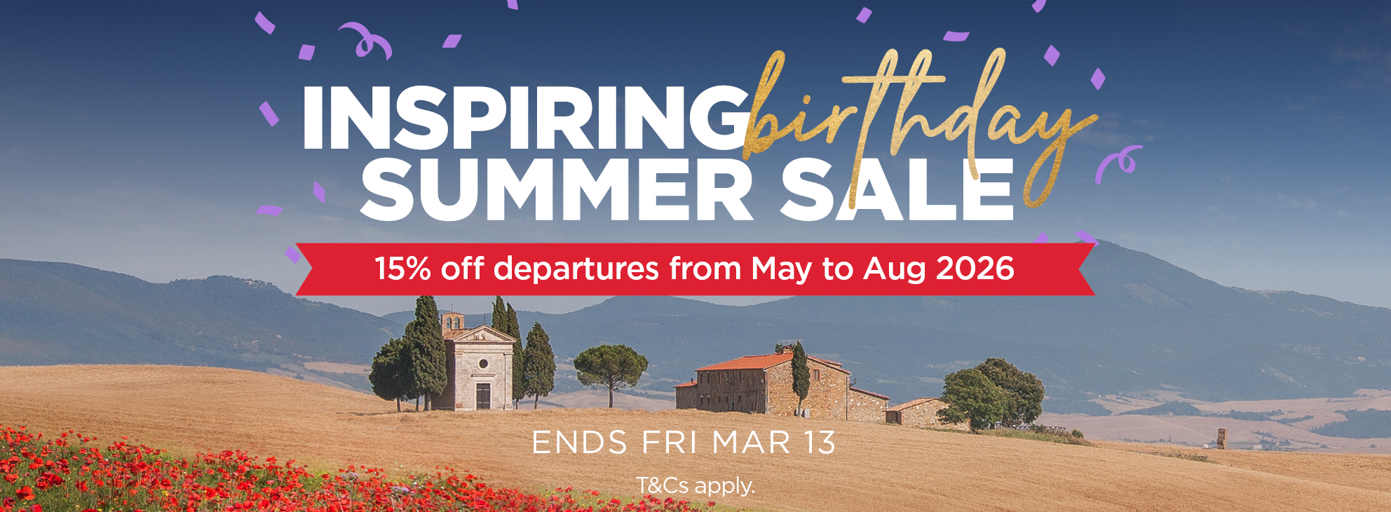Travel from May 1 to August 31, 2026 - and you can save 15% on your chosen tour. Call our travel specialists on 1 888 356 2021 to book. But be quick - this offer ends Friday March 13, 2026.
