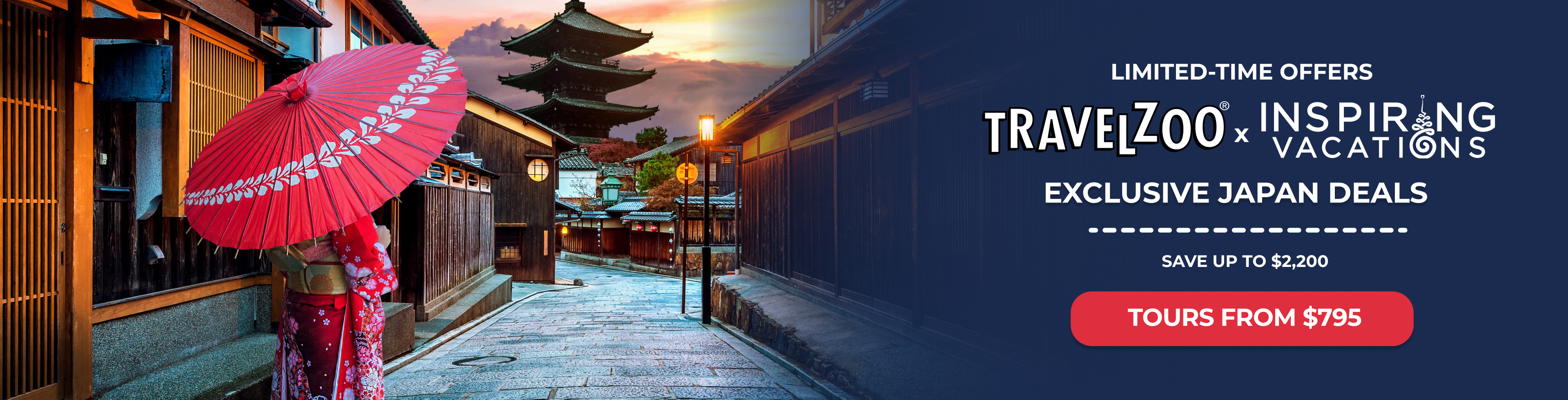 Save up to $2,200 on select member-only Japan tours with Travelzoo and Inspiring Vacations. Explore Japan like never before—from the magic of cherry blossom season to the energy of Tokyo’s buzzing streets. Discover tranquil temples, cutting-edge cities, and the thrill of the bullet train, all on expertly curated itineraries. These exclusive savings are available for a limited time only.