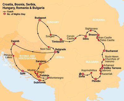 Over three weeks, explore Belgrade, Budapest, Bucharest, Zagreb, Split, Dubrovnik, Mostar, Sarajevo, Sofia, and more. Discover captivating cultural sites, stunning landscapes, and the rich history of the Balkans. This immersive journey will reveal the region's beauty and complexity, offering an unforgettable adventure through its heart and soul.