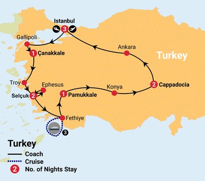 Entrance fees for Pamukkale (Hierapolis) are not included and can be arranged with your tour leader or purchased locally.