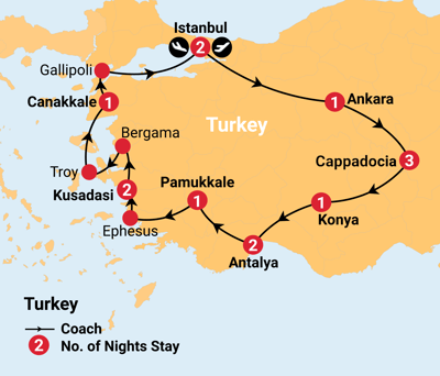 ✓ Incredible sightseeing including the ancient cities of Epheus, Troy and Pergamon, Cappadocia’s 'Fairy Chimneys' and underground cities, and Istanbul’s rich cultural tapestry