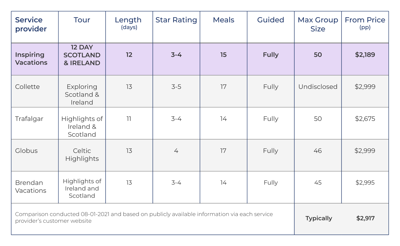 ✓ Incredible sightseeing including city tours in Edinburgh, Dublin & Clonmacnoise as well as vists to a whisky distillery in Pitlochry, Blair castle , Eilean Donan castle, Urquhart castle , Powerscourt gardens , Rock of Cashel , Folk park in Bunraty , Cliffs of Moher and more